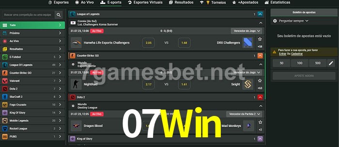 A aposta 07Win oferece aos jogadores a experiência mais conveniente de apostas em eSports!